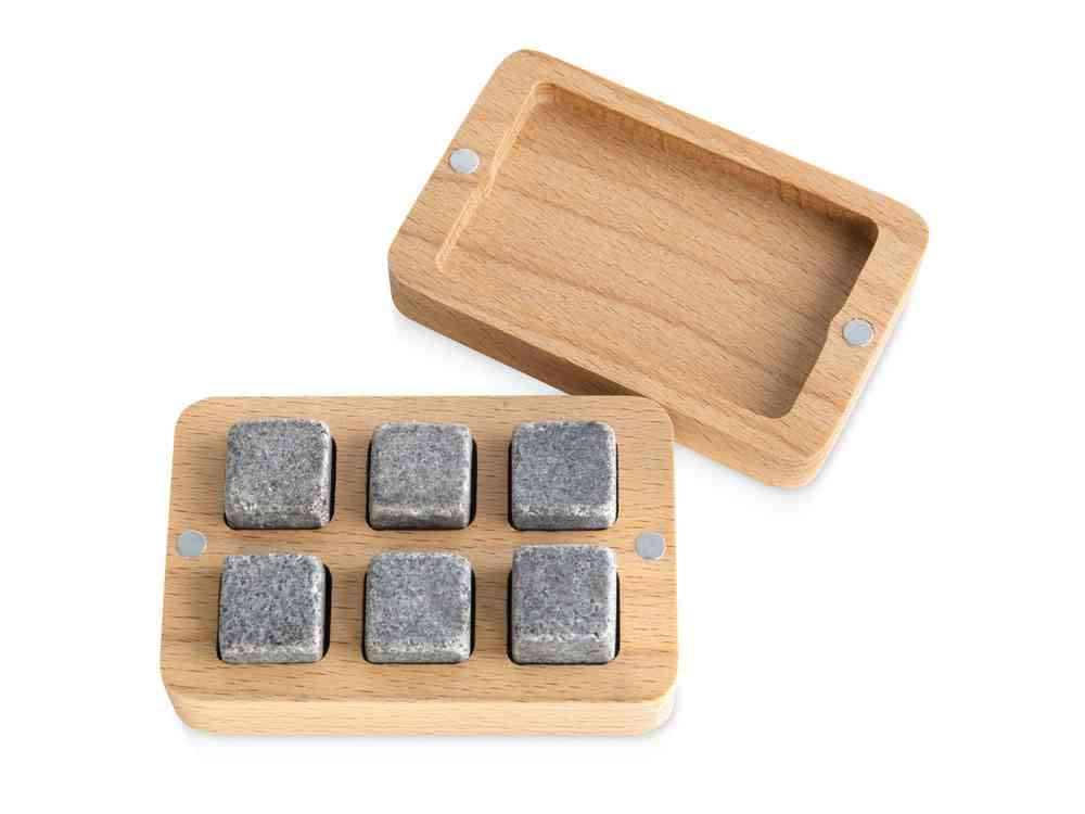 - Дерево, серебро и медь. В подарок тем, кто любит изысканные атрибуты, можно присмотреть эксклюзивные комплекты, например с необычной подставкой, щипцами и ведерком для льда. Оригинальный логотип, форма и дорогая «огранка» из серебра или меди смотрятся аристократично и очень престижно.